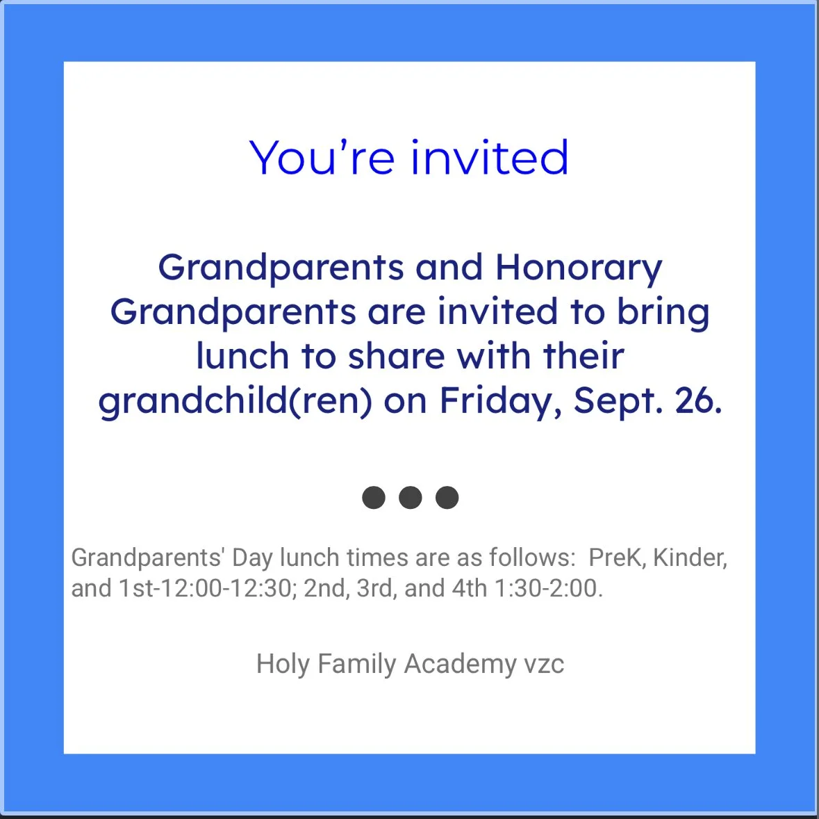 Holy Family Academy vzc will be offering Tuesday Tours each Tuesday throughout the school year. Please call the school in advance to schedule.